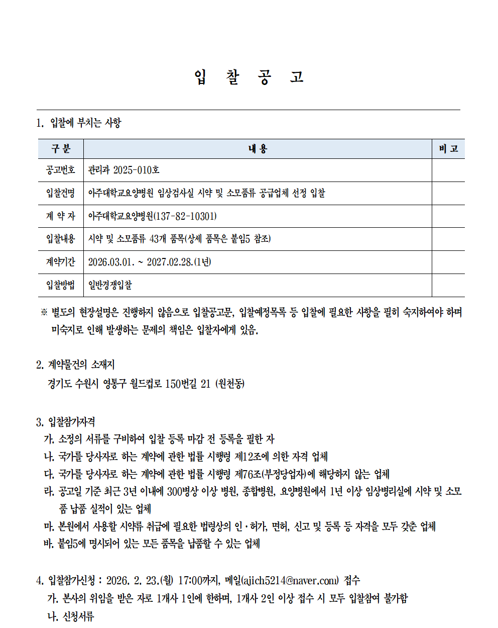 2026-02-10발주처 : 아주대학교요양병원입찰방법 : 일반경쟁입찰