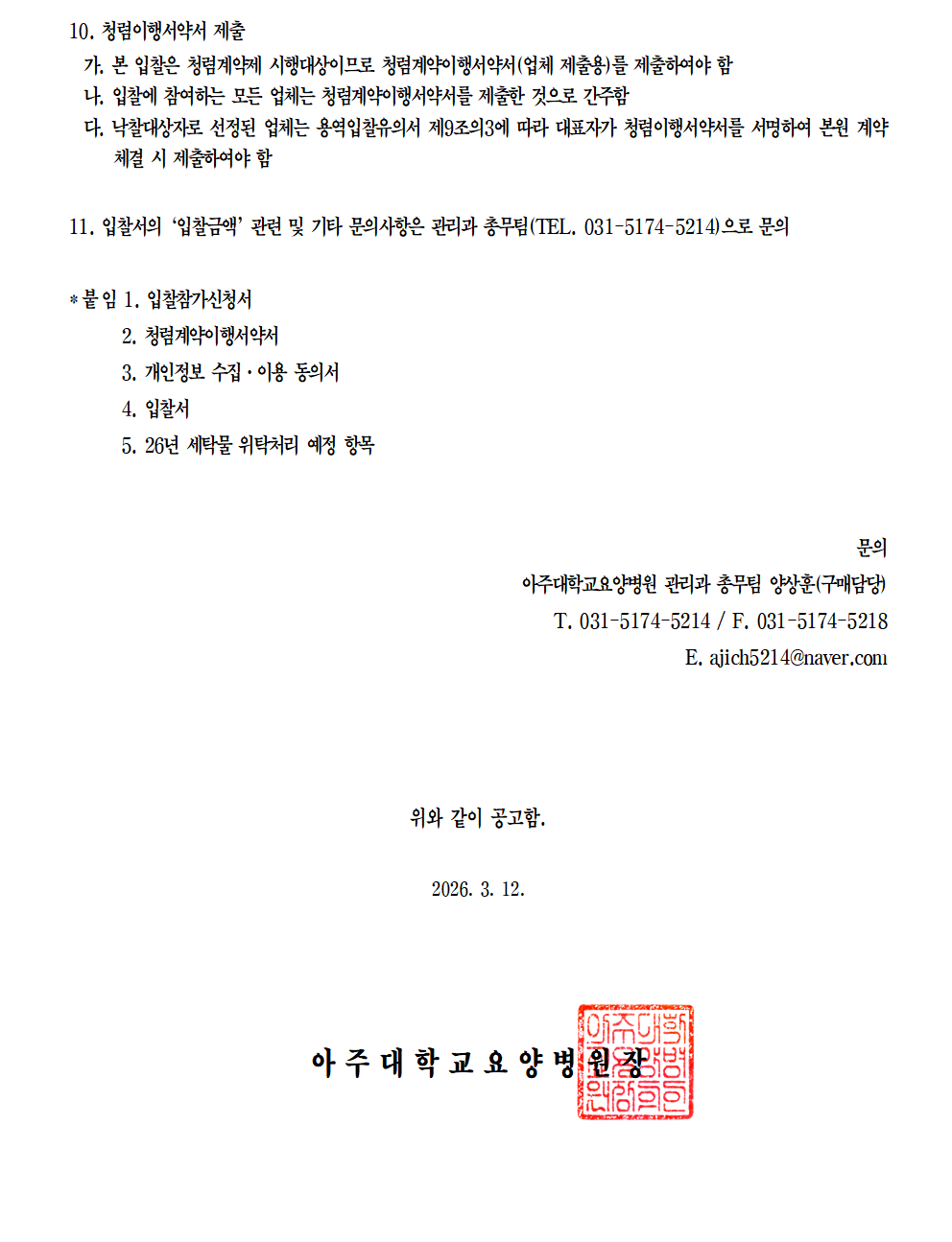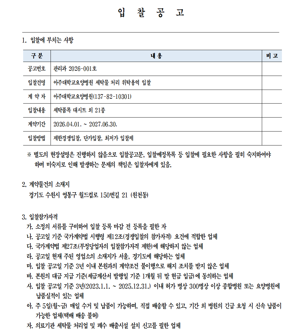 2026-03-12발주처 : 아주대학교요양병원입찰방법 : 제한경쟁입찰